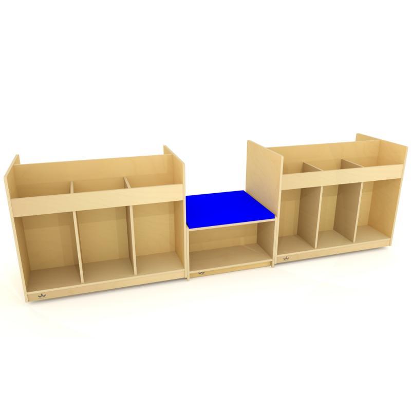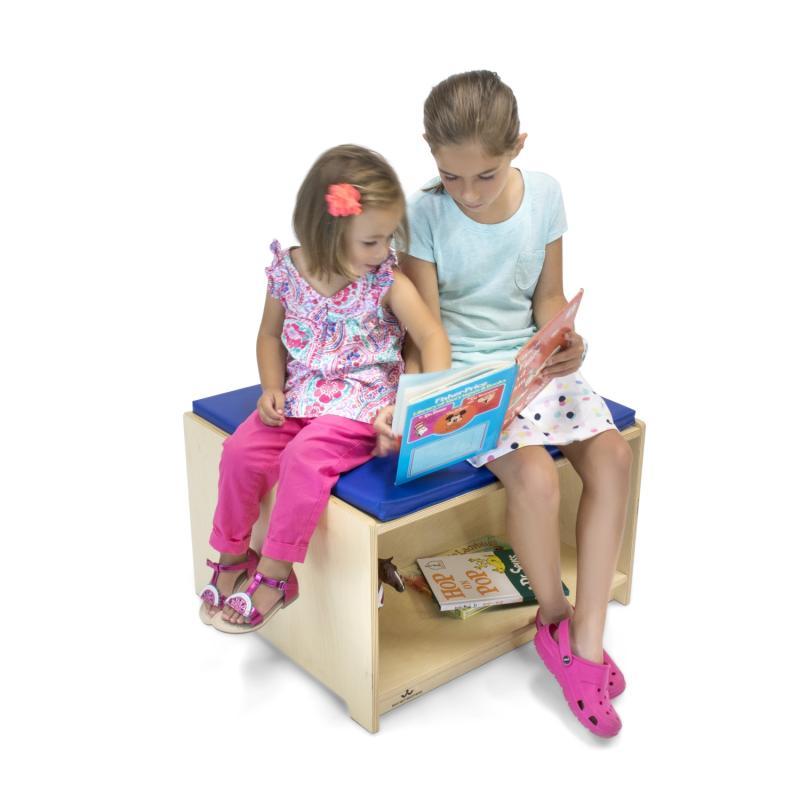 Create a comfy and inviting reading area! The clever design elements of this bench with vinyl covered foam cushion [included] and ample open storage underneath enable it to stand-alone or attach to our WB1821 Mobile Library Book Cabinet [sold separately] to create an inviting, cohesively designed reading and book storage area. Constructed in beautiful, durable birch plywood with no visible screws or joinery for a nice finished furniture look in safe, non-toxic natural UV finish that won't yellow and withstands rigorous use. Made in USA. GreenGuard™ Gold certified. Lifetime Warranty.