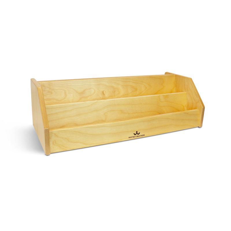 Put access to books right at infant and toddler level! Our Infant - Toddler Book Display features premium quality design and construction that won't slide on the floor and a wide, no-tip footprint that puts book display and access at just the right height to engage crawlers and young toddlers. The front includes two graduated height fixed shelves [each is 2.25"D x 22.75"W x 4.125"H] that are canted slightly backward for optimum book stability and front cover display. The back includes a single vertical pocket [1"D x 22.75"W] that accommodates taller books. All edges and corners are rounded over and sanded smooth for safety. Constructed in beautiful, durable birch plywood in safe, non-toxic natural UV finish that won't yellow and withstands rigorous use. Made in USA. GreenGuard™ Gold certified. Lifetime Warranty.