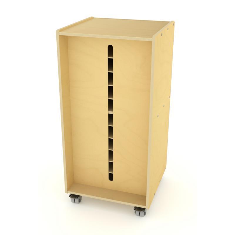 The intelligently designed interior design of this cabinet provides secure and convenient storage with rear venting and recharging access for up to 10 laptops and their recharging accessories. Mounted on heavy duty non-marking lockable casters for handy mobility. Power strip not included. Constructed in beautiful, durable 15mm birch plywood in safe, non-toxic natural UV finish that won't yellow and withstands rigorous use.
