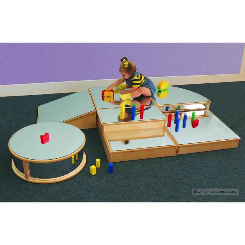 Floor mirror blocks for first-movers! Mirrors are important tools that foster a young child's self-awareness, self-esteem, intellectual curiosity and cognitive development. In an inventive twist, we applied safe, shatterproof acrylic mirrors on a variety of block shapes to encourage a first-mover's mobility, coordination and confidence through exploration and play. Purchase the WB0159 Round Infant Floor Mirror separately [as shown] or as part of the WB0220 Infant Floor Mirror Set, sold separately. Constructed in beautiful, durable birch plywood with no visible screws or joinery and edges that are rounded over and sanded smooth for safety. Ships FedEx or UPS Ground. Made in USA. GreenGuard™ Gold certified. Lifetime Warranty.