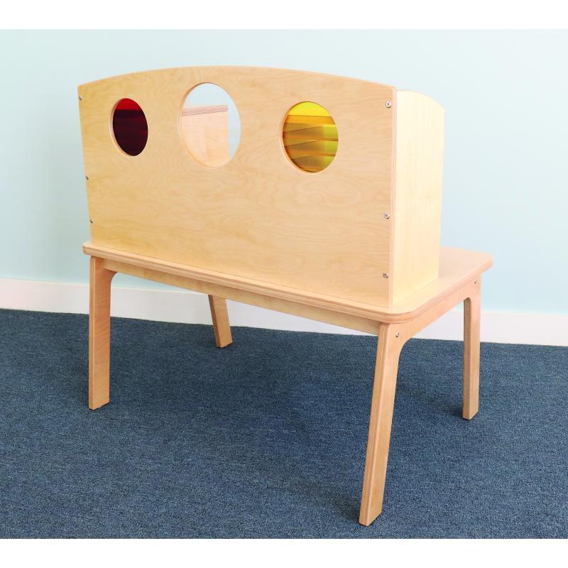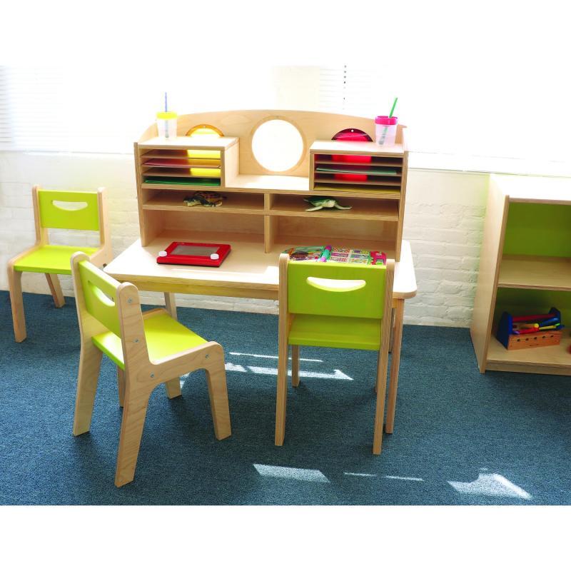 INFO This uniquely styled desk invites children to sit down and read, write, draw, create or play. Crafted in beautiful, durable 1-inch birch plywood in natural UV finish with colorful acrylic inserts...